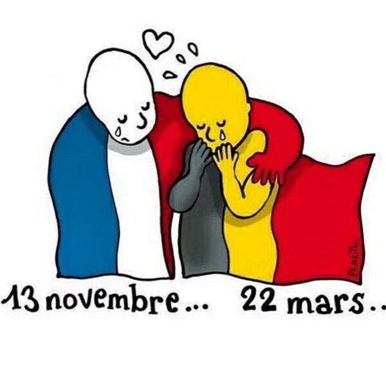 وعبر المغردون في فرنسا بشكل خاص عن تضامنهم التام مع الشعب البلجيكي تحت شعار "أنا بلجيكي Je suis Bruxelles"، ومن خلال تصميمات لعلم بلجيكا على شكل قلب، وتصميم آخر كرتوني لشخصين يرتدي أحدهما علم فرنسا يقوم بمواساة الآخر الذي يرتدي علم بلجيكا، في إشارة إلى أن الفاجعة واحدة للشعبين.