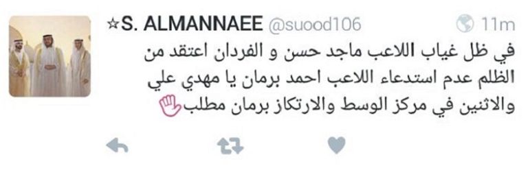 فيما قال المغرد الجابري "كل الاحترام للشعب السعودي بغض النظر عن الاختلاف في وجهات النظر يبقى المنتخب الإماراتي عينان لرأس واحد".