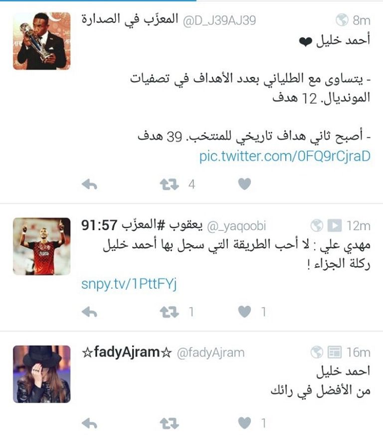 وكشف أحد المغردين عن تساوي اللاعب أحمد خليل مع عدنان الطلياني النجم الإماراتي السابق كأفضل هداف في تاريخ مشاركة الإمارات بتصفيات المونديال برصيد 12 هدفًا.
