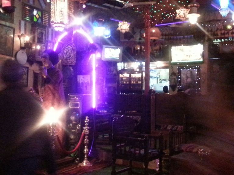 استكمالًا للتجول بشارع المعز.. المقاهي لم تراع حرمة الأرصفة التي خصصت للمارة فافترشت حرم الطريق بالكراسي وضمت جزء من الشارع إلى ملكيتها بدون أي رادع، كذلك بعض الباعة خصصوا أجزاء من الرصيف والحوائط التراثية لتعليق بضائعهم، كما تجاوزت محال الجزارة وغيرها بتلويث نهر الطريق بالمياه غير النظيفة، في غياب تام للرقابة الأمنية والثقافية.