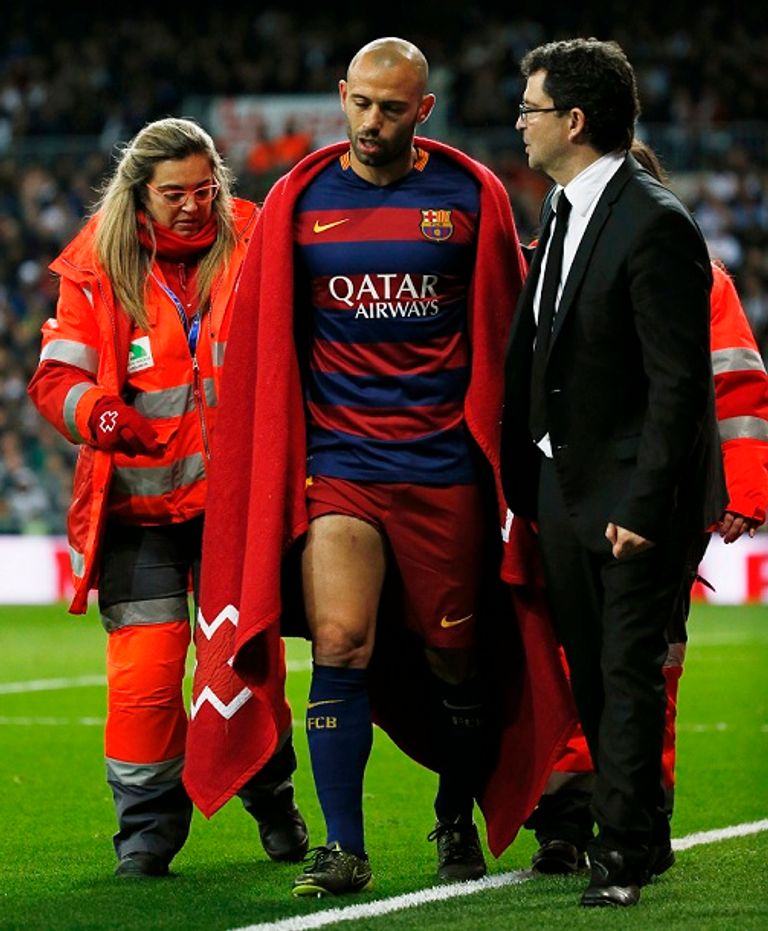 خسر برشلونة جهود نجمه الأرجنتيني خافيير ماسكيرانو بعد مرور 28 دقيقة فقط من بداية مباراة الفريق أمام ريال مدريد "الكلاسيكو" المثير ضمن الجولة الثانية عشرة من الدوري الإسباني.