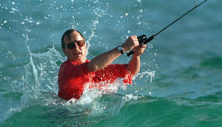 8- أيام فقط بعد فوزه على دوكاكيس في الانتخابات الرئاسية 1988. أخذ الرئيس الأمريكي جورج بوش الأب باستراحة لصيد السمك في تيار الخليج في ولاية فلوريدا. وكان فوز بوش حينها ساحقا حيث حصل على 426 صوتا انتخابيا، في حين دوكاكيس حصل فقط على 111 صوت.