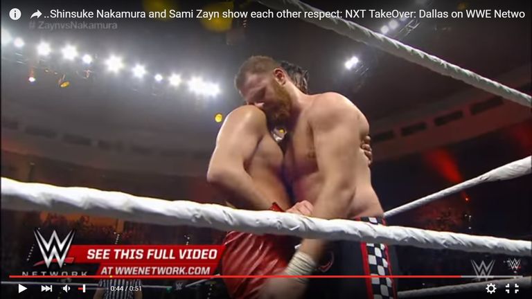 وبعد إعلان الحكم فوز ناكامورا كان سامي زين جالسا على الأرض في ركن الحلبة من الإرهاق، واقترب منه ناكامورا ليجلس أمامه مادًّا يده إليه ليصافحه، وتردد سامي زين في البداية لكنه مد يده لمصافحة ناكامورا، فصاح الجمهور ليُظهر امتنانه لهذه الروح الرياضية لكلا المصارعين.