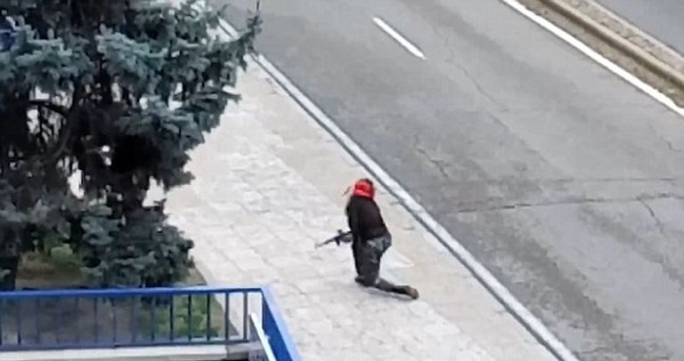 وأظهرت لقطات فيديو، التقطها أحد سكان المنطقة، امرأة ترتدي غطاء رأس تحمل بندقية على كتفها، تتصرف بغرابة، وتترنح على طول الرصيف قبل أن تسقط على الأرض، وبدت المرأة أقرب لإحدى رواد الحفلات العائدين من حفلة صاخبة، أكثر منها ضابطة تتلقى تدريبات خلال دورة تدريبية هامة.