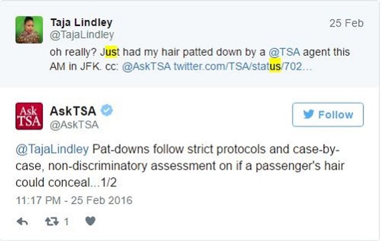 لقد نلت ما فيه الكفاية. مثل كثير من جيل الألفية، اتجهت إلى وسائل الإعلام الاجتماعي للتنفيس عن استيائي. عندما هبطت على الساحل الغربي، وفتحت تطبيق "فيس بوك"، اكتشفت أن مجموعة من أصدقائي قد علقوا، ومعظمهم من النساء سمر البشرة، وكان العديد منهن غاضبات، وذكرت أخريات كيف اجتزن أيضًا هذه التجربة مع "إدارة أمن النقل الأمريكية"، متسائلات ما يمكننا القيام به حيال ذلك.