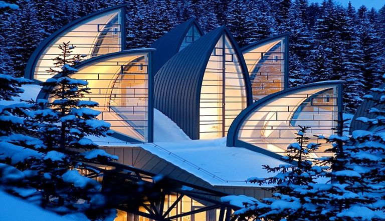 مكان لا يمكن تخيل تصميمه ومكانه، حيث يبدو كالبندقية المفقودة على سطح جبل ثلجي، يوجد هذا الفندق المصنوع من الألمنيوم في قلب جبال الألب بفرنسا، وكأنه صُمِّمَ خصيصًا للشرير جيمس بوند، ويتسع هذا المكان الخلاب لـ120 شخصًا يحبون المغامرة والتميز.