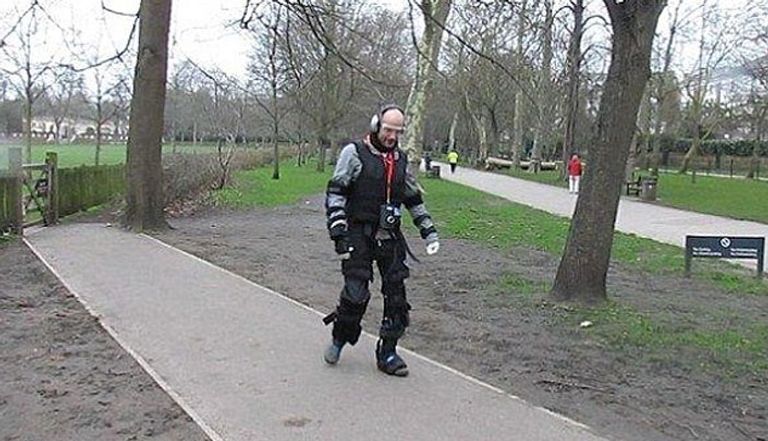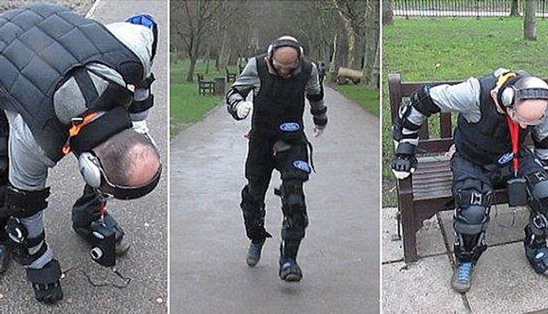 لقد تطوع دومونت في مركز (ليبرتي) العلمي الأسبوع الماضي كي يرتدي هيكلًا عظميًّا خارجيًّا (اكسوسكيليتون) يتم التحكم فيه عن بعد من خلال الكمبيوتر لضعضعة المفاصل وإضعاف حاستي السمع والبصر، علاوة على الشعور بكل ما يحسه المسنون وذلك قبل عشرات السنين من بلوغه أرذل العمر.