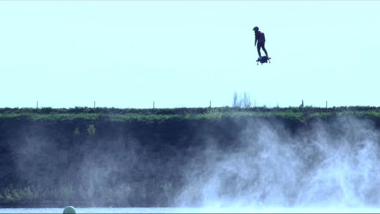 التزلج في الهواء عبر المياه أصبح حقيقة واقعية بعدما نجح بطل رياضة الدراجات المائية الفرنسي، فرانكي زاباتا، في اختراع جهاز يشبه "الطائر الغطاس" عام 2011، يمكن للإنسان أن يطير به حتى مسافة تصل إلى 10 أمتار، كما يمكنه من الغوص تحت الماء مثل الدلافين، ولكن منذ أيام، خرج علينا زاباتا باختراع جديد أكثر إبهارًا، يأخذ المستخدمين بعيدًا عن سطح المياه، وهو جهاز "فلاي بورد إير"، أو ما يمكن تسميته مجازًا "السكوتر الطائر".