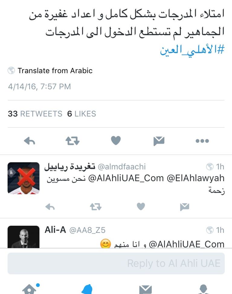 حضرت جماهير غفيرة خارج استاد راشد بالنادي الأهلي وذلك بعد إغلاقه من قبل الإدارة بعد امتلاء المدرجات بجماهير الأهلي والعين.