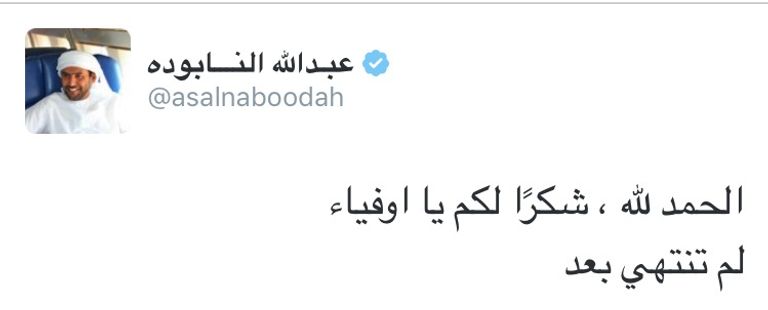 قال عبد الله النابودة رئيس مجلس إدارة النادي الأهلي الإماراتي إن الدوري لم ينتهِ بعد، وذلك عقب فوز فريقه على العين بهدف دون رد.