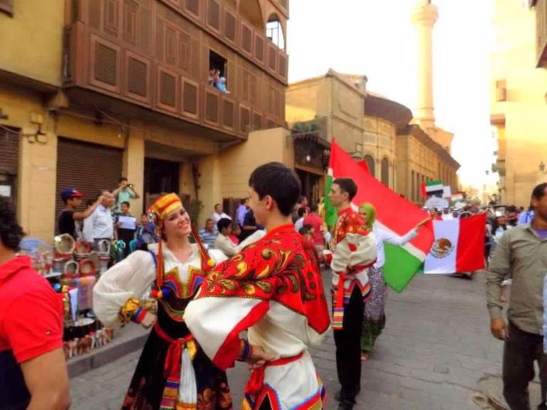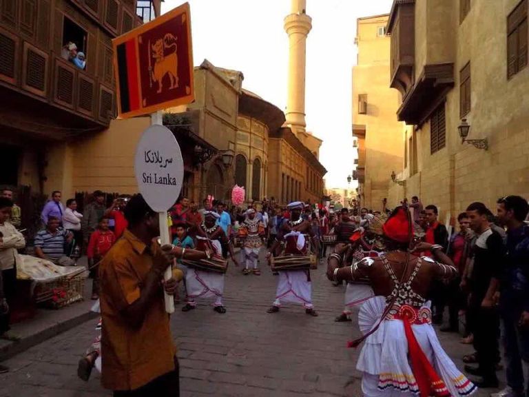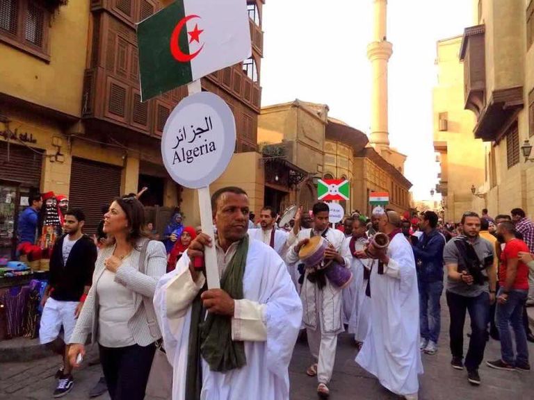 شوارع القاهرة الفاطمية تتزين في مسيرة ملونة للفنانين المشاركين في المهرجان الدولي للطبول.