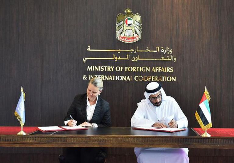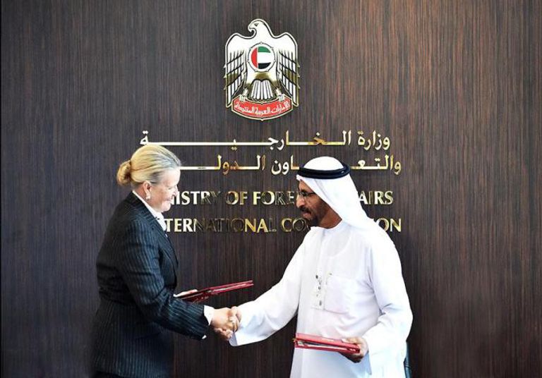 يأتي ذلك بموجب اتفاقية تم توقيعها اليوم بمقر وزارة الخارجية والتعاون الدولي، بأبوظبي لدعم مشاريع إعادة الاستقرار، وللمساعدة على تحقيق الاستقرار لأبناء الشعب العراقي الشقيق في المناطق المحررة مؤخرا من قبضة داعش في العراق.