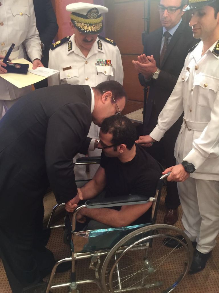 عبدالغفار فاجئ الحضور بنزوله من أعلى المنصة وقام بتقبيل أحد مصابي الشرطة، الذي كان يجلس على كرسي متحرك، كما احتضن أحد أبناء ضابط شهيد.