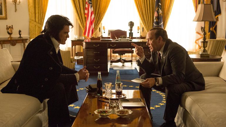 لقاء الفن بالسياسة بين المغني ألفيس بريسلي والرئيس الأمريكي الأسبق ريتشارد نيكسون، أعيد إحياءه بفيلم كوميدي يبدأ عرضه الجمعة