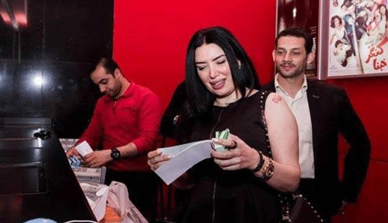 صور.. عبير صبري تبيع تذاكر "اللي اختشوا ماتوا" للجمهور
