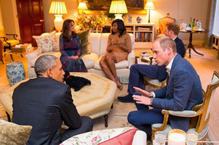 في أول لقاء من نوعه، قالت العائلة المالكة البريطانية إن الأمير جورج، أصغر وريث للعرش البريطاني، ظل مستيقظا ليكون في استقبال الرئيس الأمريكي باراك أوباما وزوجته ميشيل، في مأدبة العشاء التي أقامها الأمير ويليام وزوجته دوق كامبريدج تكريما لأوباما، وحضرها الأمير هاري النجل الأصغر للأمير تشارلز ولي العهد البريطاني.
