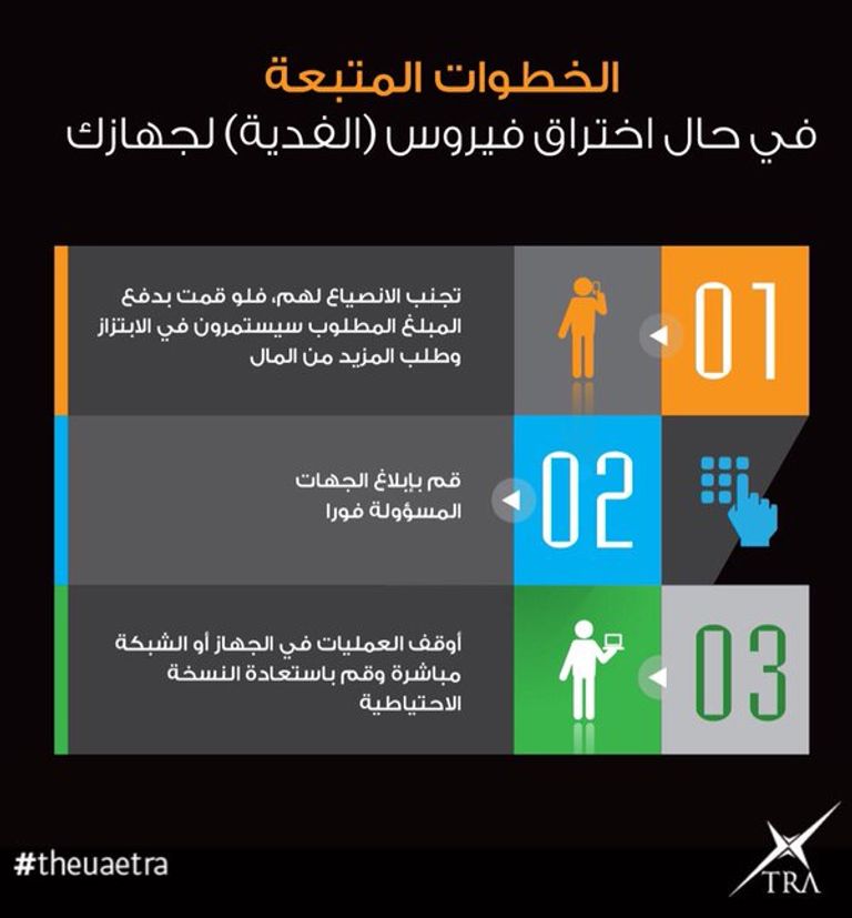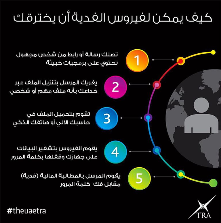وقد أصدرت الهيئة العامة لتنظيم قطاع الاتصالات في دولة الإمارات، في بداية أبريل الجاري تحذيرا مهما من "فيروس الفدية"، داعية إلى الحذر من هذا الفيروس الخطير.