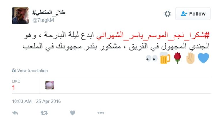 وقال مستخدم يدعى عبد الله نامي: "كل الشكر للاعب يحترق من أجل الشعار".