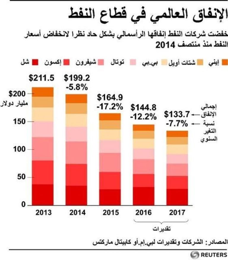 وخفضت شركة النفط البريطانية المستوى المستهدف لإنفاقها في 2016 إلى 17 مليار دولار من 17-19 مليار دولار وقالت إن هذا المستوى قد ينخفض إلى 15-17 مليار دولار في العام القادم إذا ظلت أسعار النفط ضعيفة.