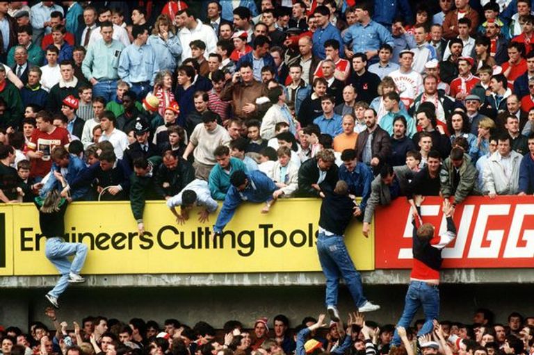 وحصلت هذه الكارثة بعدما تدفق مشجعو ليفربول أمام بوابات الملعب مع اقتراب موعد ضربة البداية، فتحت قوى الأمن بابا يؤدي إلى الجناح المخصص لهم لتخفيف الضغط. لكن المشجعين كانوا قد هرعوا إلى منصة مزدحمة أصلًا.