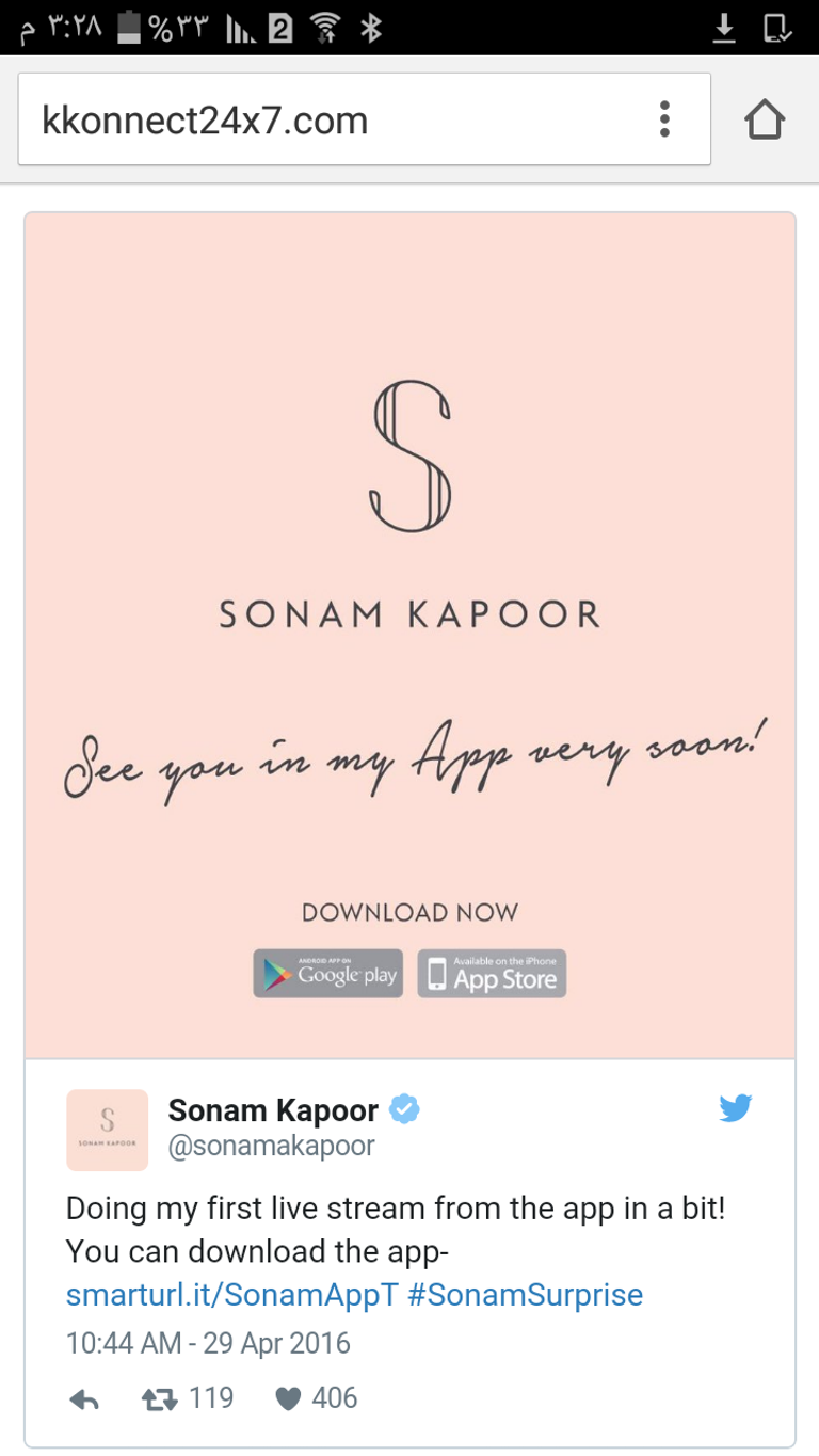 النجمة الهندية سونام كابور أطلقت تطبيقًا يحمل اسمها مفتوح تحميله على هاتفه الهواتف.