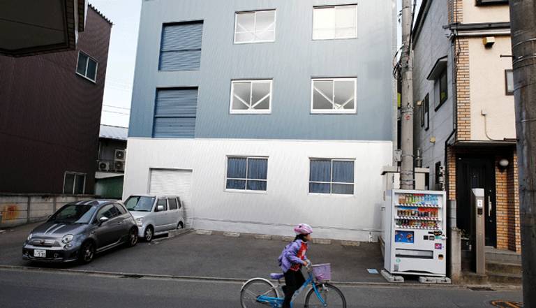 في منطقة بعيدة بشارع سكني هادئ في مدينة كاواساكي اليابانية مبنى فضي اللون بلا أي زخارف من الخارج نوافذه مغطاة بستائر سوداء من الداخل ويراه السكان مخيفا.