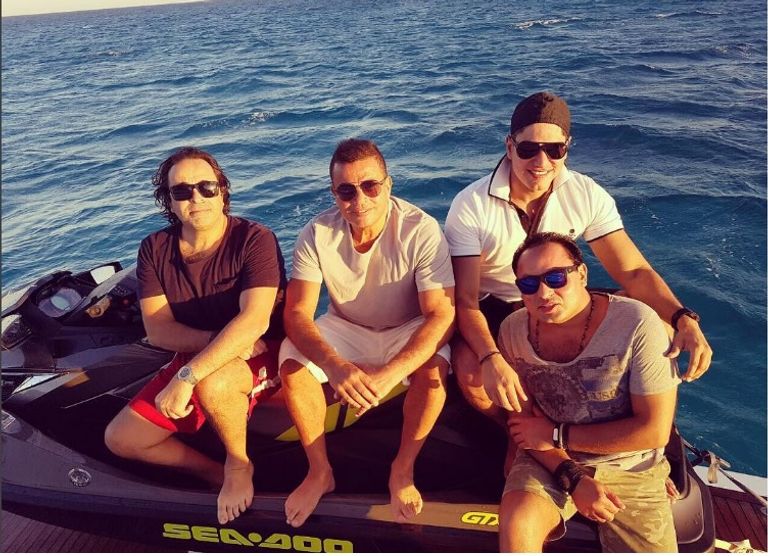 وظهر عمرو دياب مع بعض الأصدقاء بينهم رجل الأعمال المصري أحمد أبوهشيمة، في صورة على يخت بحري في إحدى المدن الساحلية.