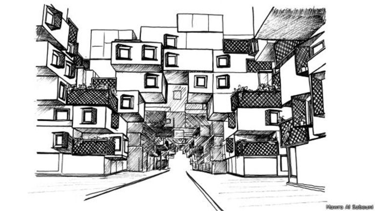 وتبحث أيضاً عن العناصر التي أدت إلى نشوب الحرب في الوقت الحاضر، مثل الفقر وتوزيع السكان وفقاً للطائفة في العديد من الأحياء ما جعل عملية الاقتتال أكثر شراسة. ترسم الصابوني خططا جريئة لإعادة إعمار أكثر الأحياء دماراً: باب عمرو، الحي الذي شهد حصاراً وعملية تدمير منهجية وقتالا بين القوات الحكومية ومقاتلي المعارضة.