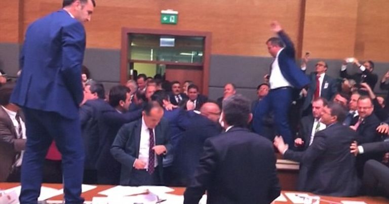 وقبل ذلك بساعات، وأثناء بحث اللجنة مشروع القانون، نشب شجار بين أعضاء من حزب "العدالة والتنمية" الحاكم، وأعضاء من حزب "الشعوب الديمقراطي" المؤيد للأكراد.