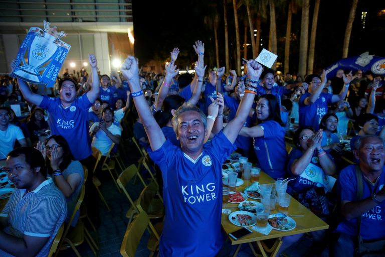 مع رفع ليستر سيتي لكأس الدوري الإنجليزي الممتاز كانت الجماهير على بعد أكثر من 9 آلاف كيلومتر تحتفل برفع لافتة زرقاء كتب عليها "ليستر سيتي.. فريق تايلاند" وذلك في ليلة حارة بالعاصمة بانكوك.