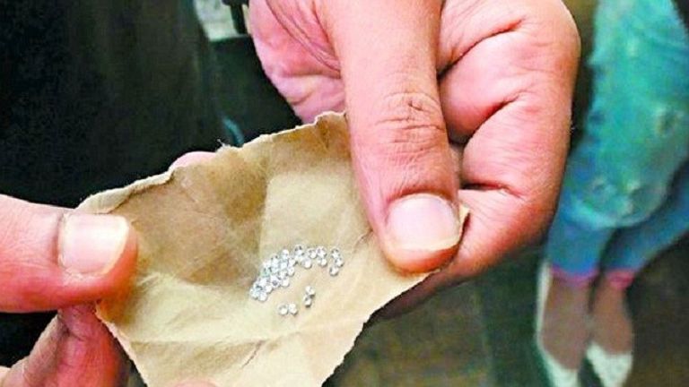 وبدأت السيدة بالصراخ "ألماس.. ألماس" بعدما أشارت بيديها إلى سقوط الأحجار، وفي تلك اللحظة قام أكثر من 50 شخصًا بالتدافع للحصول على ما يعتقدون أنه ألماس.