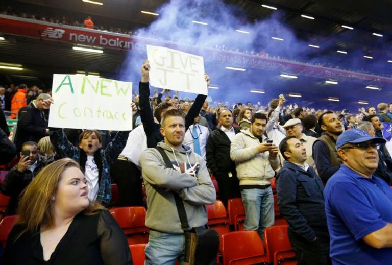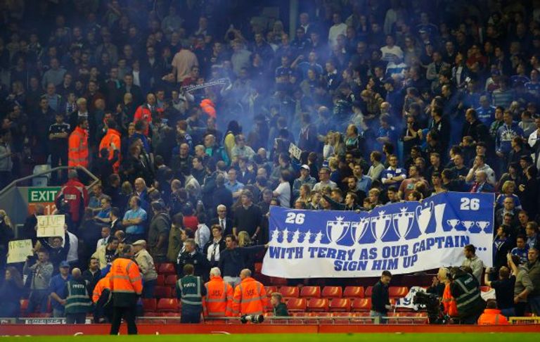 جمهور تشيلسي الموجود في ملعب "أنفيلد" لمؤازرة فريقه أمام مضيفه ليفربول طالب بضرورة قيام إدارة النادي بتجديد عقد قائد الفريق جون تيري.