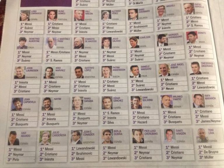نشرت صحيفة "موندو ديبورتيفو" الإسبانية، قائمة المدربين واللاعبين الذين صوَّتوا لجائزة الكرة الذهبية لأفضل لاعب في العالم لعام 2015، والتي يمنحها سنويًا الاتحاد الدولي لكرة القدم "الفيفا" بالتعاون مع مجلة "فرانس فوتبول" الفرنسية.