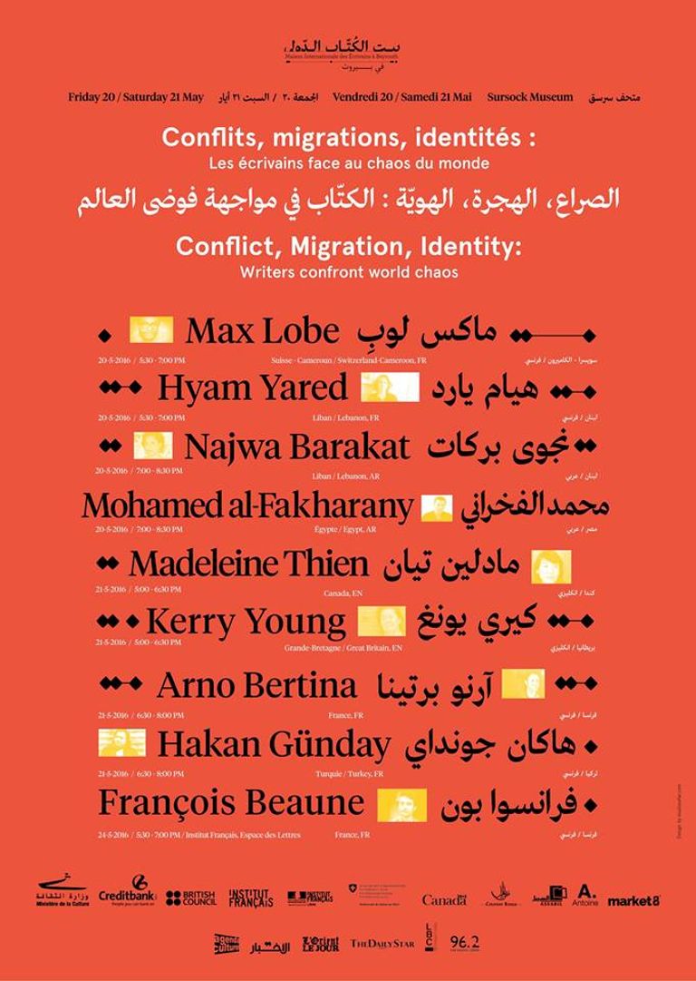 الهجرة، العنف، الصراعات والمدن المتغيرة هي عناوين لقاء "بيت الكتاب الدولي" الثالث الذي يعقد تحت عنوان "الكتاب في مواجهة فوضى العالم" بين 18 مايو و1 يوليو بين القاهرة وبيروت.