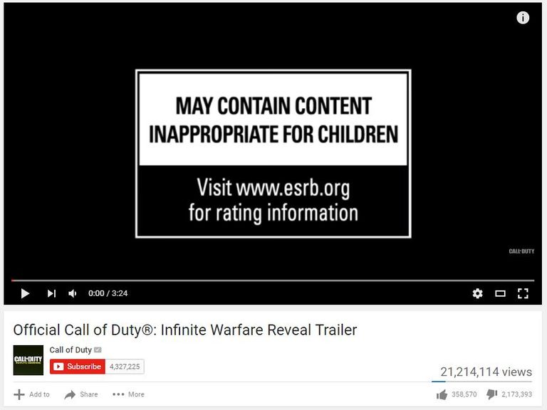 في سابقة تعد الأولي من نوعها، واجهت شركة Infinity Wards المنتجة لسلسلة ألعاب Call of Duty الحربية 2,173,393 حالة عدم إعجاب للفيديو الخاص بإصدارها الجديد COD Infinite Warfare الذي سيتم طرحه في نوفمبر/تشرين الثاني القادم.