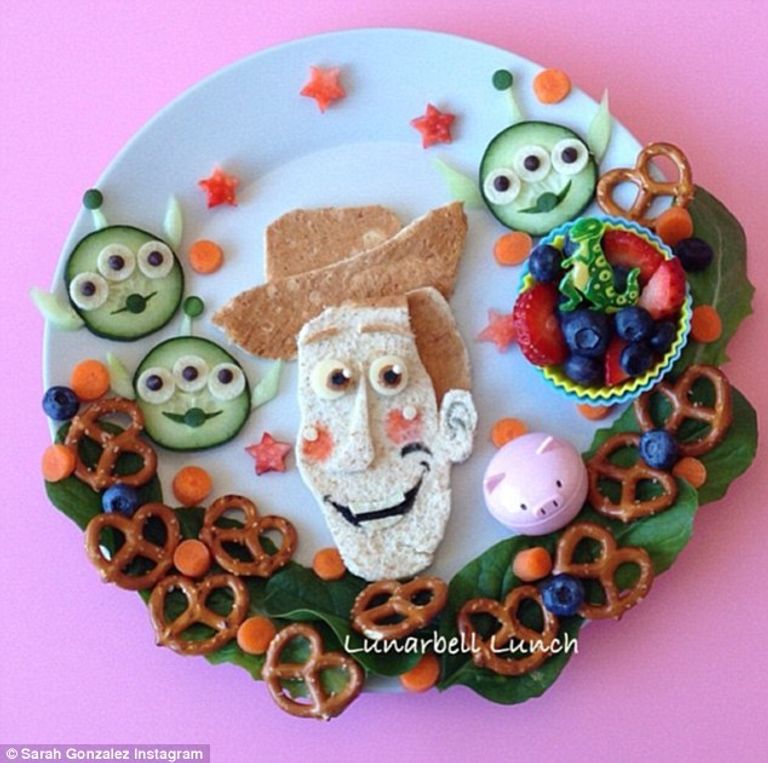 سارة جونزاليس، أم أمريكية، لستة أطفال تصنع أعمالًا فنية دقيقة بشكل مذهل من وجبات طعام أطفالها تشمل شخصيات ديزني ومجموعة من الحيوانات الملونة.