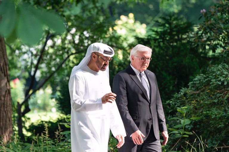 وأكد الشيخ محمد بن زايد آل نهيان أن الإمارات تولي العلاقات مع جمهورية ألمانيا الاتحادية أهمية خاصة، وتحرص على توثيق الروابط بين البلدين، خاصة في المجالات التي تتعلق باقتصاد المستقبل، وما يتصل به من تكنولوجيا وابتكار وبحث علمي وغيرها.