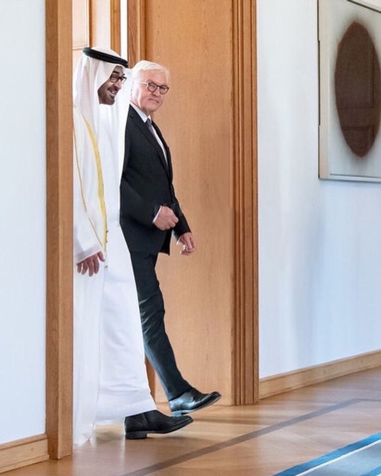وكان الشيخ محمد بن زايد آل نهيان صافح مستقبليه حيث كان من بينهم ستيفن ستينلين وزير دولة ومدير مكتب الرئيس ونيلز انن وزير دولة في وزارة الخارجية وايرنست بيتر فيشر سفير جمهورية ألمانيا الاتحادية لدى الدولة وعددا من المسؤولين، فيما صافح الرئيس الألماني الوفد المرافق للشيخ محمد بن زايد آل نهيان.