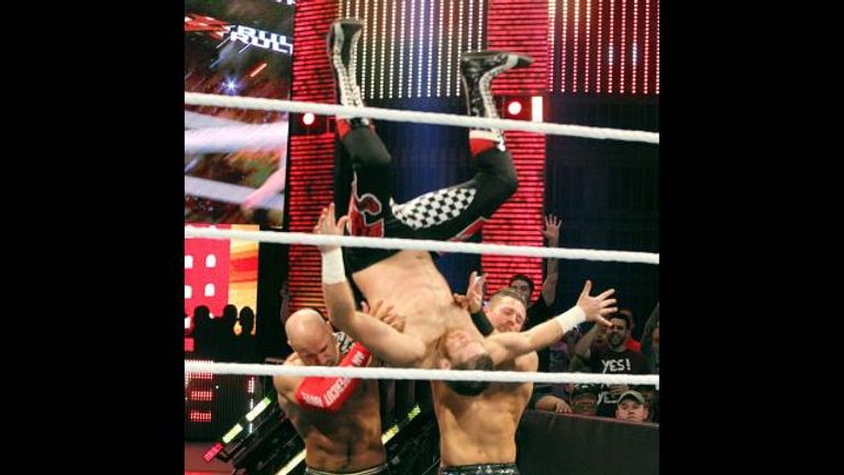 وعندما كان يحاول أحد المصارعين أن يثبت أكتاف مصارع آخر، كان المصارعان الآخران يتدخلان في آخر لحظة لمنع انتهاء النزال.