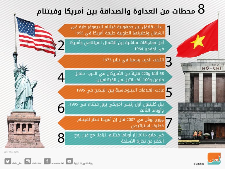 إنفوجراف.. 8 محطات من العداوة والصداقة بين أمريكا وفيتنام