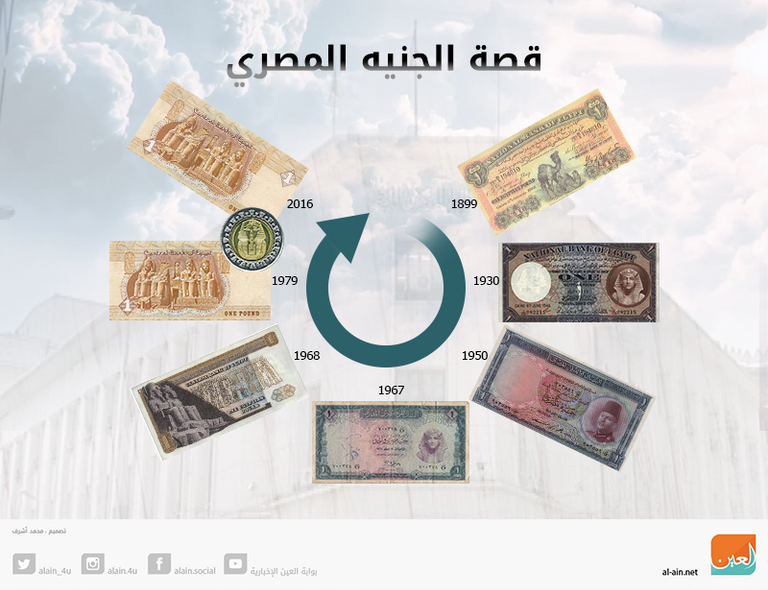 وبعد ثورة 1952 عاد شكل الجنيه يحمل صورة تمثال أبوالهول، ومعبد إيزيس الفرعوني، وهو الشكل نفسه الذي حمله الجنيه في ثلاثينيات القرن الماضي.