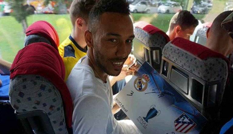 وظهر أوباميانج في فيديو نشره حساب دوري الأبطال على مواقع التواصل الاجتماعي، وهو يحمل لوحة بتوقعه للنهائي، تشير إلى فوز الريال على أتليتكو مدريد بنتيجة 3-2، وهو ما اعتبره بعض عشاق الريال فألا سيئا بعد متابعتهم خطأ تنبؤات أوباميانج طوال الموسم.