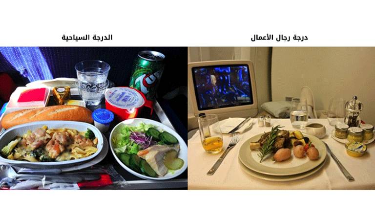 عند السفر على متن خطوط الطيران، فإن إحدى تلك الخدمات التي تقدمها تلك الخطوط هي الوجبات الخاصة بالمسافرين على متن طائراتها، لكن هناك فروق قد تكون جوهرية بين فئات المسافرين فيما يتعلق بنوعية الطعام المقدم لهم.