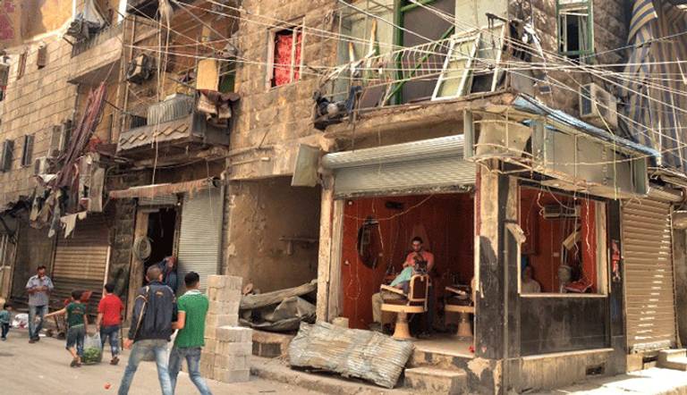 وتظهر مقاطع فيديو التقطها مصورا فرانس برس في الأحياء الشرقية وكذلك الغربية أبنية ومنازل شبه مدمرة ونوافذ وأحيانًا واجهات المحال مغطاة بالنيلون أو البلاستيك المقوى.