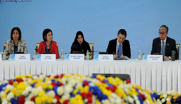 وضم وفد المجلس الوطني الاتحادي المشارك في فعاليات المؤتمر عبدالعزيز عبدالله الزعابي النائب الثاني لرئيس المجلس، وسعيد عبدالله المطوع، وجمال محمد الحاي، وخلفان عبدالله بن يوخه، وعفراء راشد البسطي أعضاء المجلس، وحمد راشد الحبسي القائم بالأعمال بالإنابة في سفارة دولة الإمارات بكازاخستان.