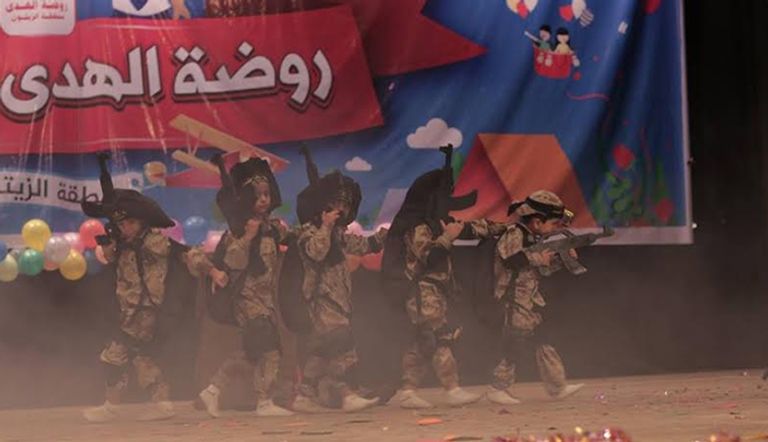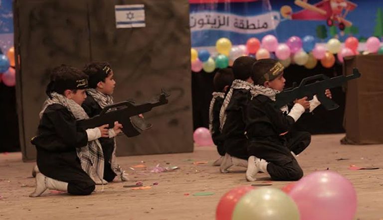 رابط فيديو لأطفال غزيين في عروض تمثيلية مرتدين لباسًا عسكريًّا: