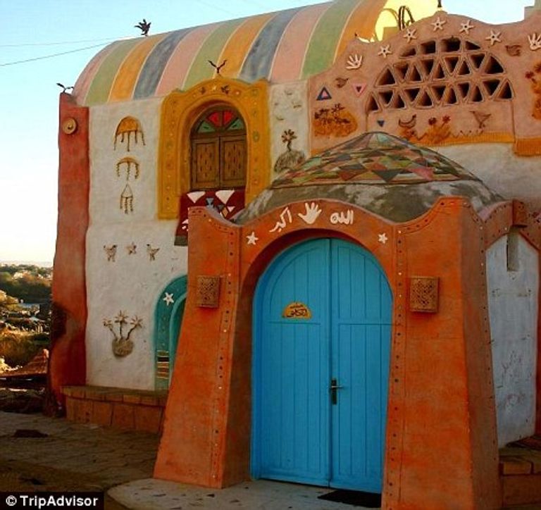المشهد ترسمه احترافية البناء وروعة الفن المعماري النوبي المتقن لمجموعة من بيوت الضيافة المتميزة.