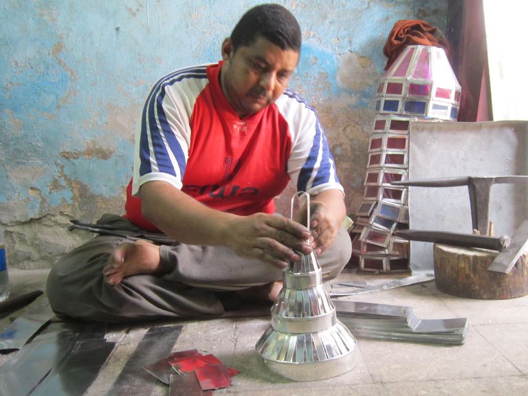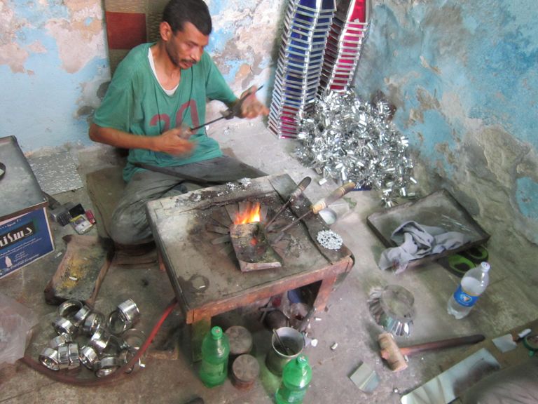 يجلس الأشقاء الثلاثة (علي، محمد، حسين) القرفصاء بورشة صغيرة يتشاركون تقطيع وقص وتشريح معدن الصاج ثم دقه ولصق أطراف الفانوس في المرحلة الأخيرة، احترف الإخوة دق الفوانيس بمنطقة الصليبة في السيدة زينب، جنوبي القاهرة منذ قرابة 40 عاما.