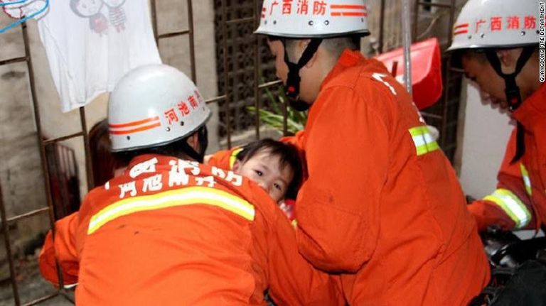 رجال الإطفاء في الصين ينقذون طفلة في الثالثة من عمرها تركها أهلها في المنزل لوحدها.