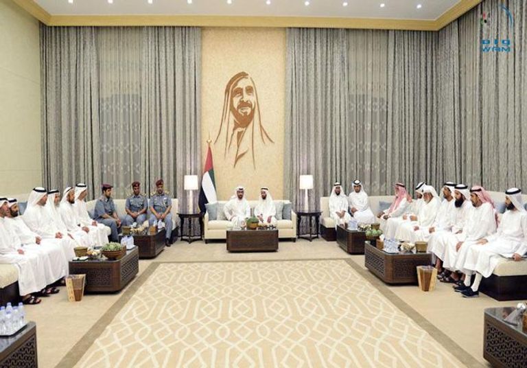 الشيخ حمدان بن زايد آل نهيان ممثل الحاكم في المنطقة الغربية يستقبل جموع المهنئين بشهر رمضان المبارك من كبار المسؤولين والمواطنين.